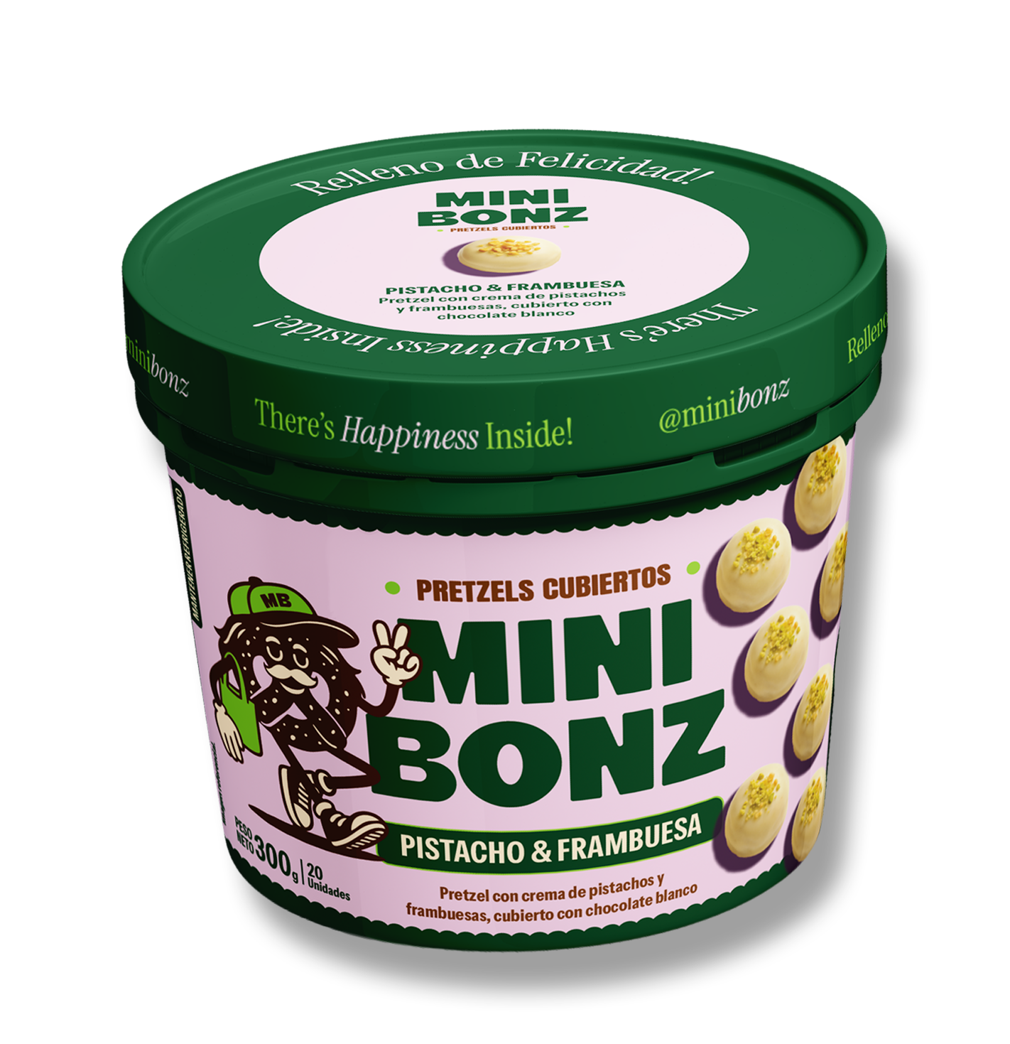 Sabor a Pistacho & Frambuesa cubierto de chocolate blanco